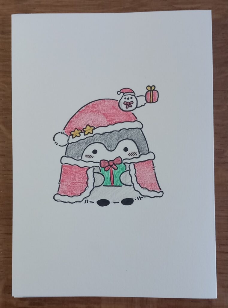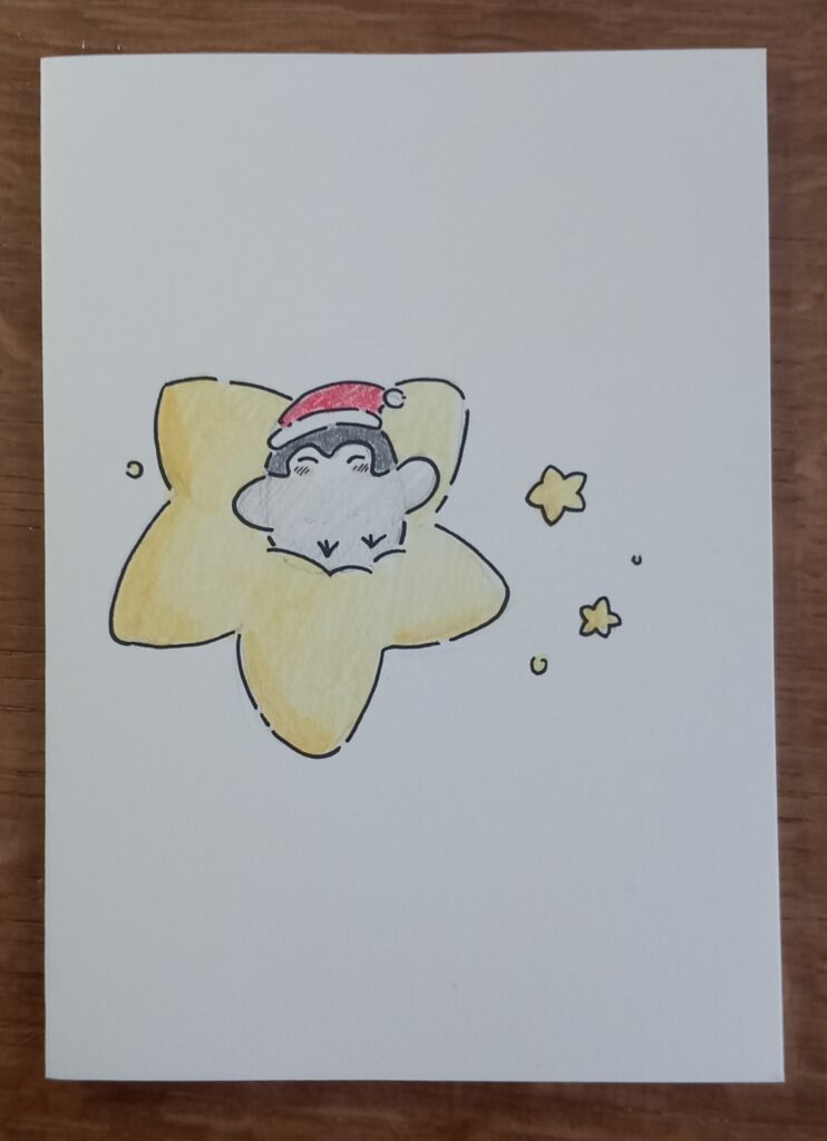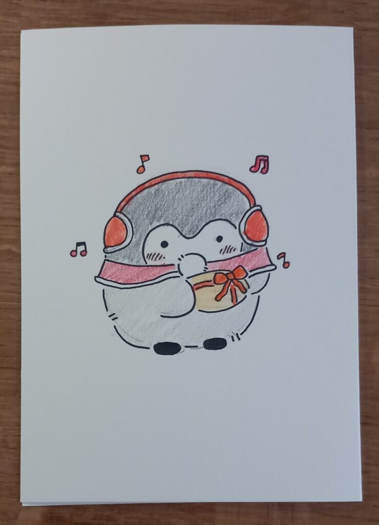 Wir hatten natürlich auch nicht direkt eine Idee für eine eigene Figur. Also fingen wir an Fanart zu Zeichnen. Da die Pinguine auch gut zu Weihnachten passen haben wir uns rangetastet und Postkarten entwickelt.